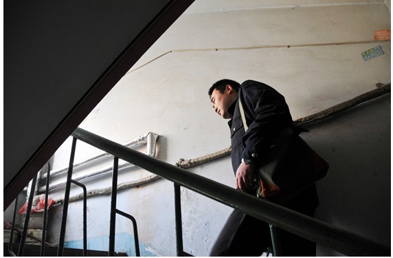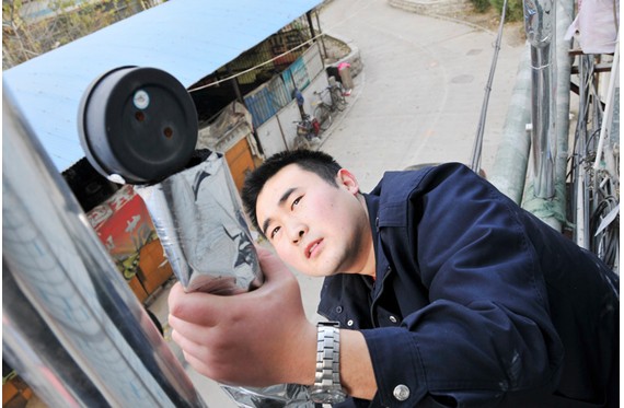 來到11號樓,胡站長并沒有直接進(jìn)入用戶家,他首先爬上二樓單元屋檐上,檢查了一下進(jìn)、出單元的壓力表,一切正常后,才來到4樓王大娘家。