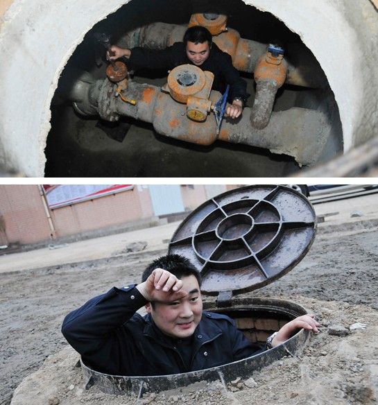 簡單的午餐過后,胡站長開始了閥門井的巡視工作。當(dāng)掀開位于濟(jì)陽大街的主管道井蓋時(shí),一股熱浪襲來。“井內(nèi)溫度達(dá)到46度,到這里面就如同洗桑拿浴”胡站長開玩笑說。等他從6米多深的管道井中上來時(shí),一頭的汗水。大的管道井雖然熱,但是內(nèi)部空間比較大,維修保養(yǎng)還比較容易,眾多小區(qū)開發(fā)商自行建設(shè)的小管道井才是工作中的挑戰(zhàn),空間狹小,工作人員只能用特殊地體位更換閥門。