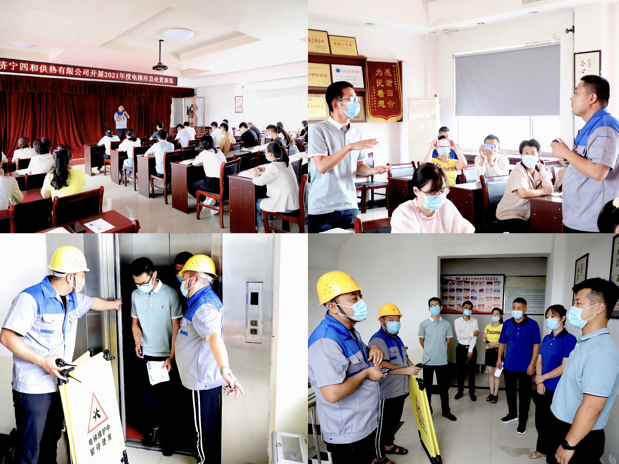 近年來,關于電梯困人、傷人事件的報道屢見不鮮。為切實提高員工應對電梯突發(fā)事件的處置能力和安全意識,加強事故應急救援搶救工作,近期,濟寧四和供熱有限公司聯(lián)合電梯維保單位在公司七樓會議室開展了電梯安全知識培訓及電梯應急處置演練。